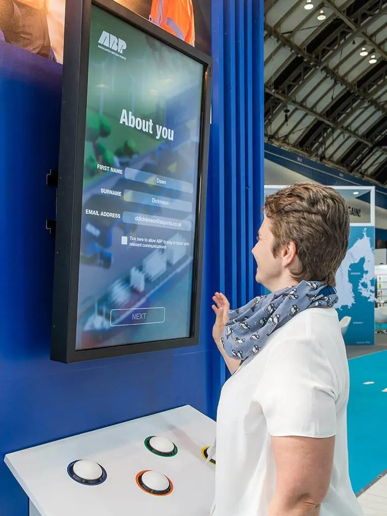 For engagement, an interactive proximity table with reverse RFID technology allowed visitors to move a puck around a map of ABP location hotspots. When placed over a hotspot, varied personalised content was played on the screen, displaying information on each location.
