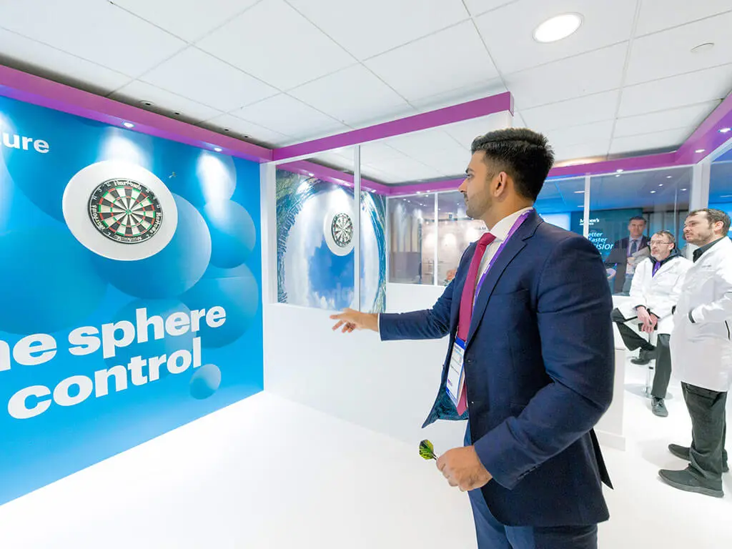 We utilised robotics to attract and educate. Our in-house engagement team developed the ultimate attention-grabbing challenge of Humans vs Robots. Event delegates could take their best shot at throwing darts at a standard dartboard but with an unusual competitive twist as they went head to head against a robotic arm.