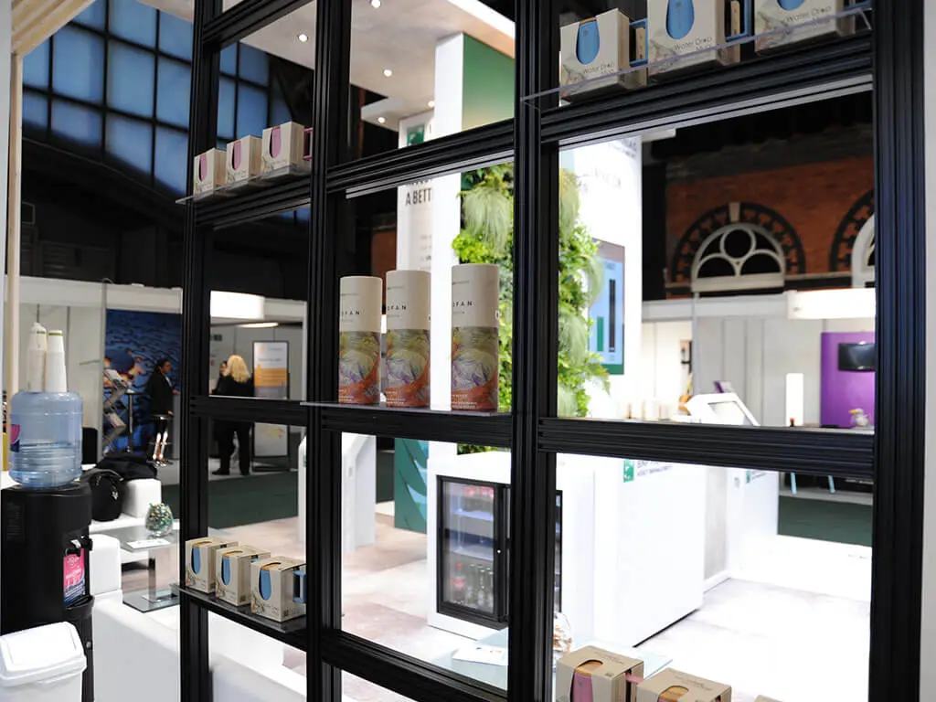 Nimlok’s Bespoke-Hire solution (blending hired framework and re-usable architecture with bespoke features and graphics to minimise material consumption and waste) also aligned with their environmental objectives to work with a sustainable exhibition stand solution.