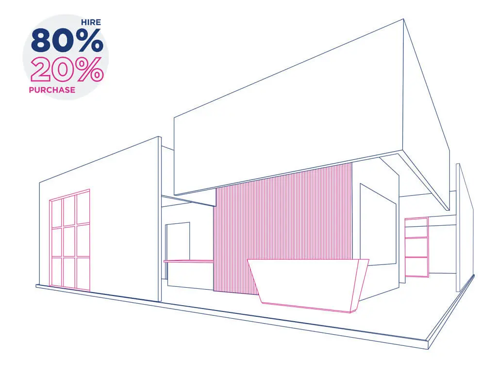 Nimlok’s bespoke hire solution minimised expenditure on a large stand. With KBB only occurring every 2 years, a traditional custom-built stand would have incurred huge single-use fabrication costs and generated vast material waste. Our team created a hired structure which had no solid walls and utilised giant fabric graphics attached to a hired modular framework. To increase installation speed, kitchen units were mounted on hidden pattresses, concealed behind the fabric.